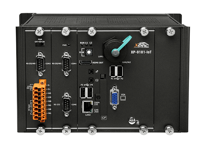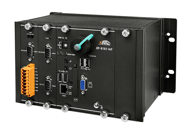 XP-9181-IoT to komputery PAC z systemem Windows 10 IoT Enterprise, które łączą przetwarzanie, I/O oraz interfejs operatora w jednym urządzeniu, zapewniając idealne rozwiązanie do integracji HMI, akwizycji danych i sterowania w jednym PAC. Wyposażony jest w procesor Intel E3845, jedno gniazdo rozszerzeń I/O oraz różnorodne połączenia, w tym podwójny Ethernet Gigabit, VGA, port USB, interfejsy RS-232 i RS-485. Dostępne są lokalne gniazda I/O do współpracy z naszymi modułami I/O serii I-9K i I-97K. Możliwa jest również zdalna rozbudowa I/O przy użyciu modułów Ethernet I/O lub modułów RS-485 I/O.