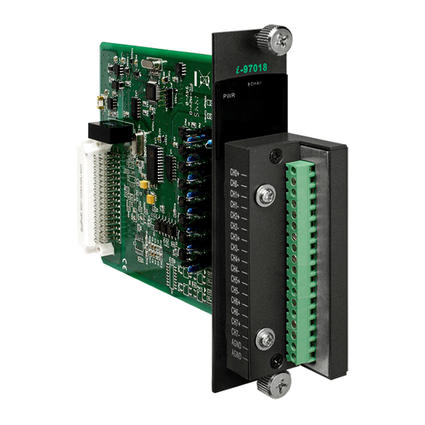 Moduł I-97018 to 8-kanałowy uniwersalny moduł wejścia analogowego z interfejsem RS-485, który został specjalnie zaprojektowany do niezwykle dokładnych pomiarów termopar i posiada automatyczną kompensację zimnego złącza dla każdego kanału w celu zapewnienia spójności i stabilności wyniku pomiaru temperatury w terenie. Innowacyjna konstrukcja modelu ulepszonego zapewnia, że pomiar termopar jest bardziej dokładny niż w starszych modelach. Oprócz wejść termoparowych, moduł I-97018 obsługuje również wejścia napięciowe i prądowe. Zakres wejścia napięciowego może wynosić od +/-15 mV do +/-2.5 V. Do jednego modułu można podłączyć do 8 różnych typów wejść analogowych. Oferuje ochronę przeciwprzepięciową do 240 Vrms. Moduł posiada również funkcję wykrywania otwartych przewodów dla kanałów z wejściami termoparowymi oraz +4 ~ +20 mA.