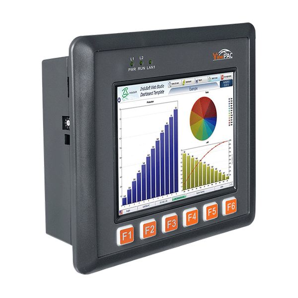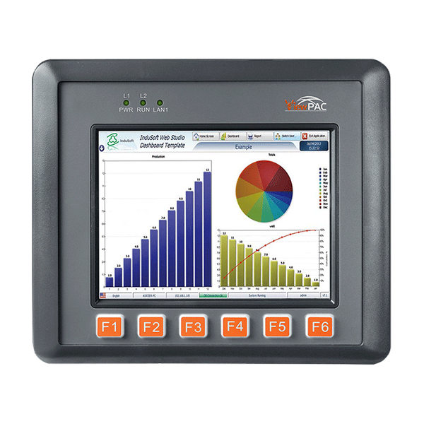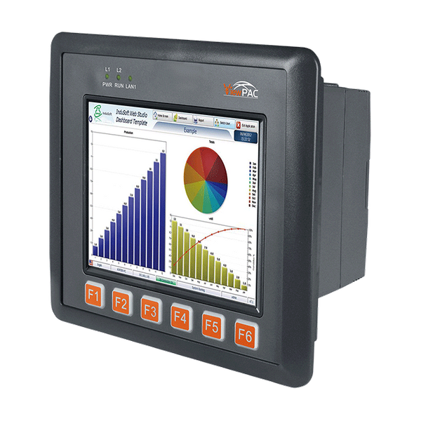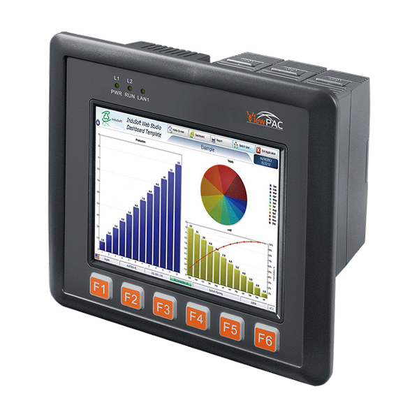 VP-1239-CE7 / VP-4239-CE7 / VP-6239-CE7 to nowa generacja sterowników PAC z systemem WinCE od ICP DAS. ViewPAC łączy w sobie funkcje WinPAC, wyświetlacz graficzny i klawiaturę w jednym urządzeniu. Wyposażony jest w procesor Cortex-A8 (1 GHz), system operacyjny Windows CE .NET 7.0, różnorodne interfejsy komunikacyjne (USB, Ethernet, RS-232/485), 3 sloty na moduły I/O, 5.7" wyświetlacz TFT LCD oraz gumową klawiaturę. System operacyjny Windows CE .NET 7.0 oferuje wiele zalet, w tym twardą zdolność real-time, mały rozmiar jądra, szybki czas uruchamiania, obsługę przerwań na głębszym poziomie, możliwą deterministyczną kontrolę i niskie koszty. Wstępnie zainstalowany jest również InduSoft Web Studio Runtime. InduSoft Web Studio to potężny zestaw narzędzi automatyzacji, który zawiera wszystkie niezbędne elementy do tworzenia nowoczesnych interfejsów HMI, systemów SCADA oraz aplikacji wbudowanych do kontroli i nadzoru. W porównaniu do tradycyjnych rozwiązań IPC + PLC, ViewPAC obniża koszty całego systemu, zajmuje mniej miejsca i oferuje wszystkie najlepsze cechy IPC i PLC.