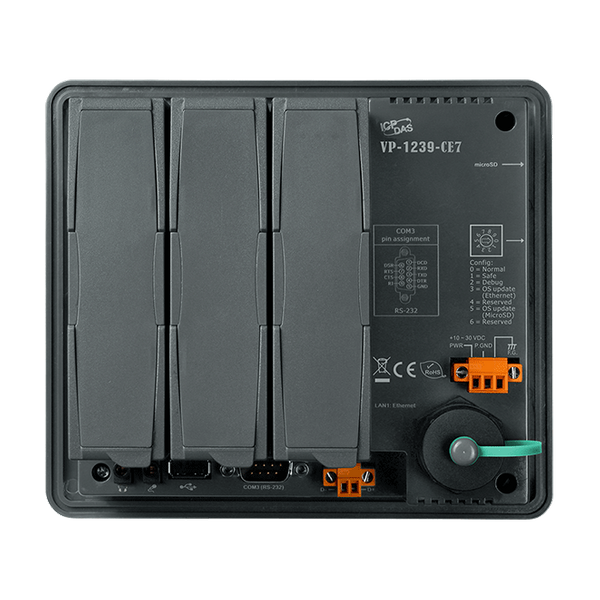 Software: Protocol: | Support Web HMI function, PC running Internet Explorer can access to the VP-1239-CE7 via Intranet, Internet, or dial modem. |