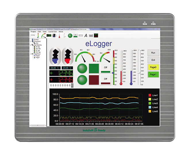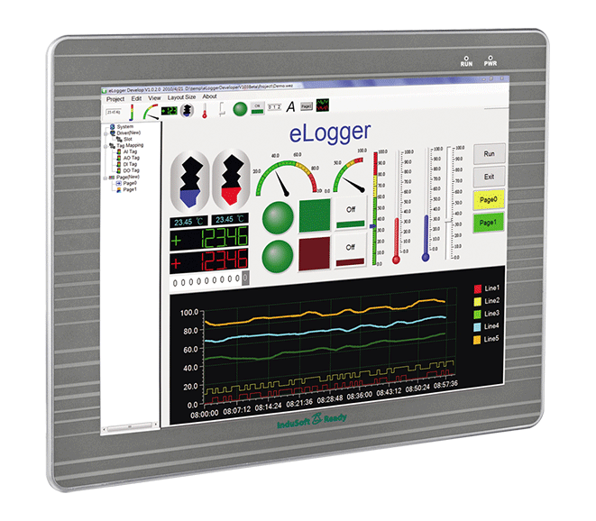 • Działa z InduSoft Runtime (CE 300/1500 tagów)