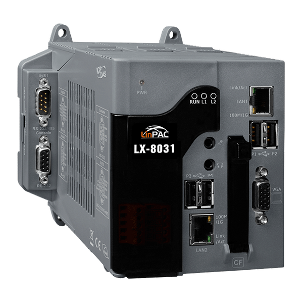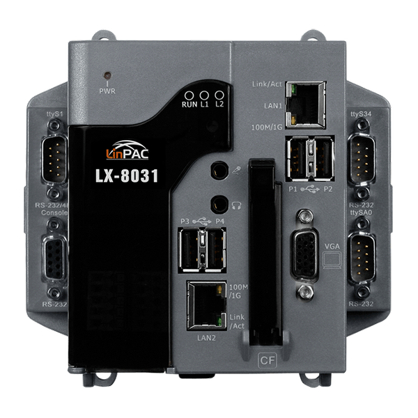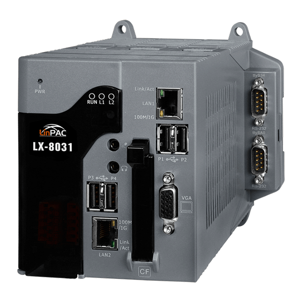 Rodzina LX-8x3x to PAC-i oparte na systemie Linux, które łączą w sobie funkcje obliczeniowe, I/O oraz interfejs operatora w jednym urządzeniu, stanowiąc idealne rozwiązanie do integracji HMI, akwizycji danych i sterowania w pojedynczym PAC-u. Wyposażone są w dwurdzeniowy procesor x86, gniazda rozszerzeń I/O 0/1/3/7 oraz różnorodne złącza, w tym podwójny Gigabit Ethernet, VGA, port USB, interfejsy RS-232 i RS-485. Lokalne gniazda I/O umożliwiają korzystanie z naszych modułów I-8K i I-87K, a rozszerzenia zdalne pozwalają na zastosowanie naszych modułów Ethernet I/O oraz RS-485 I/O. Programy użytkowników mogą być przechowywane na zewnętrznych nośnikach, takich jak karty CF lub urządzenia USB.