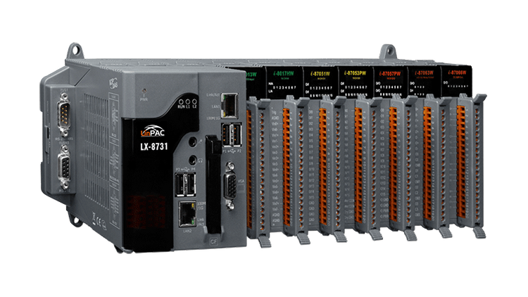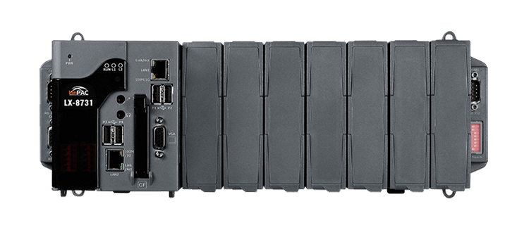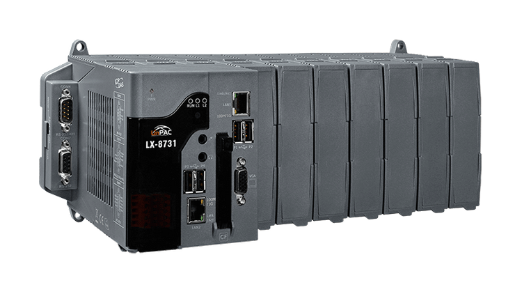 Seria LX-8x3x to kontrolery PAC oparte na systemie Linux, które integrują funkcje obliczeniowe, I/O i interfejs użytkownika w jednym urządzeniu, zapewniając idealne rozwiązanie do integracji HMI, zbierania danych i sterowania w indywidualnym PAC. Wyposażone są w dwurdzeniowy procesor x86, 0/1/3/7 gniazd rozszerzeń I/O i różnorodne połączenia w tym dwa porty Gigabit Ethernet, VGA, port USB, interfejs RS-232 i RS-485. Lokalne gniazda I/O umożliwiają korzystanie z modułów I/O serii I-8K i I-87K, a zdalne rozszerzenia I/O umożliwiają korzystanie z modułów Ethernet I/O i modułów I/O RS-485. Programy użytkownika można zapisywać na zewnętrznych urządzeniach pamięci masowej, takich jak karta CF lub urządzenie masowej pamięci USB.