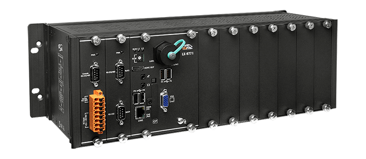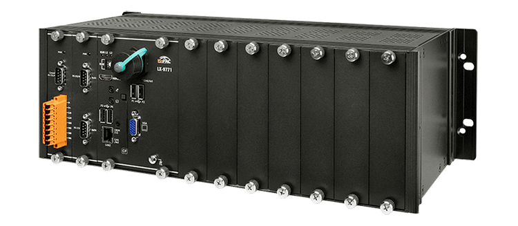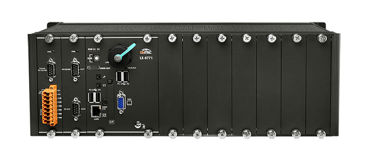 LX-9x7x to PAC-y oparte na systemie Linux, które łączą przetwarzanie, I/O i interfejs operatora w jednym urządzeniu, stanowiąc idealne rozwiązanie do integracji HMI, akwizycji danych i kontroli w jednym PAC-u. Wyposażone są w procesor Intel E3827, 1/3/7 gniazd rozszerzeń I/O oraz różnorodne interfejsy, w tym dwukanałowy Gigabit Ethernet, VGA, port USB, interfejs RS-232 i RS-485. Lokalne gniazda I/O są kompatybilne z modułami I-9K i I-97K, a zdalne rozszerzenia I/O mogą korzystać z modułów Ethernet I/O i RS-485 I/O. Programy użytkownika mogą być zapisywane na zewnętrznych urządzeniach pamięci, takich jak karta CF lub urządzenie masowej pamięci USB.