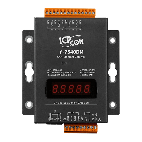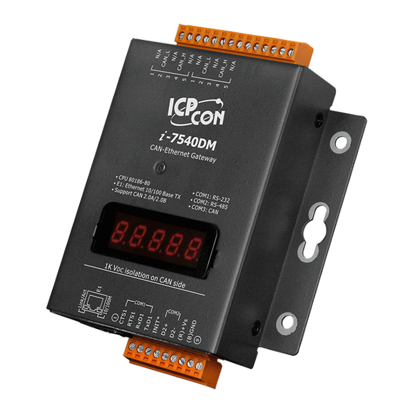 Seria I-7540D to konwertery CAN na Ethernet, zwykle stosowane jako serwer urządzeń Ethernet na CAN/RS-232/485. Obsługują funkcje dostępu do gniazd oraz technologię wirtualnego portu COM, co daje użytkownikom możliwość uzyskiwania danych CAN, RS-232, RS-485 poprzez wirtualny port COM. Seria I-7540D oferuje także tryb przezroczysty, który umożliwia sprzęganie sieci CAN poprzez Internet/Ethernet, co pozwala na zdalne monitorowanie i kontrolę. Dzięki cechom takim jak miniaturowy system operacyjny, niezależność protokołu, mała obudowa oraz elastyczność, doskonale nadaje się do różnych zastosowań z RS-232, RS-485 i CAN, które mogą bazować na prywatnych protokołach RS-232, prywatnych protokołach CAN, protokole Modbus, protokole CANopen, protokole DeviceNet lub protokole J1939.