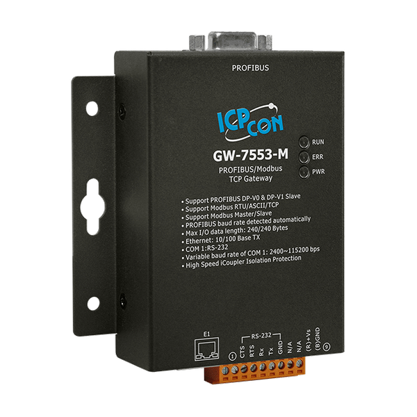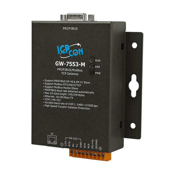 Brama GW-7553 została specjalnie zaprojektowana do urządzeń slave protokołu PROFIBUS DP. Pozwala na dostęp do urządzeń Modbus TCP przez master PROFIBUS. Tymi urządzeniami Modbus mogą być PLC, czujnik, moduł ICPDAS I-8KE4-MTCP i inne. Ponadto, moduł GW-7553 ma wbudowany serwer WWW, użytkownik może skonfigurować moduł za pomocą przeglądarki internetowej. Korzystając z tego modułu, użytkownicy mogą bardzo łatwo wprowadzić swoje urządzenia Modbus TCP do sieci PROFIBUS.