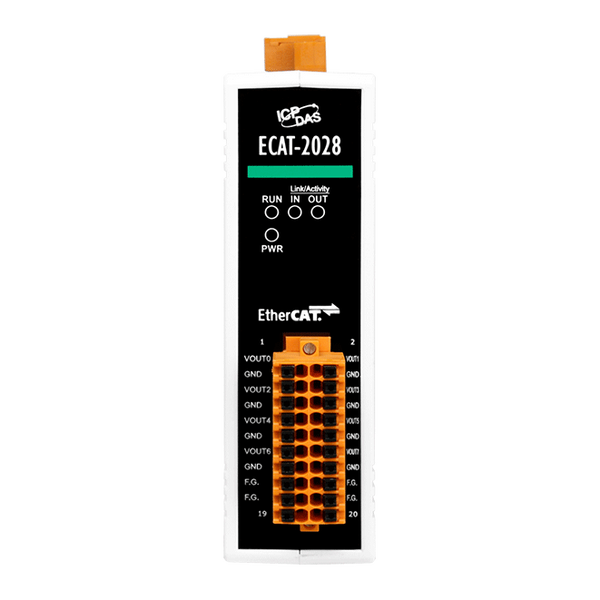 ECAT-2000 jest wyposażony w protokół EtherCAT i instalowany za pomocą połączeń szeregowych, co umożliwia elastyczność w instalacji urządzeń oraz zmniejsza koszty infrastruktury i operacyjne. Wszystkie moduły mogą być rozmieszczone w różnych topologiach sieciowych, takich jak gwiazda, linia lub pierścień. Izolowany projekt wejścia i wyjścia chroni ECAT-2000 przed szkodliwymi zakłóceniami i warunkami środowiskowymi. ECAT-2028 posiada 8 kanałów wyjścia analogowego 12-bitowego. Użytkownicy mogą uzyskać status wyjścia za pośrednictwem danych przetwórczych. Moduł przeszedł i został zweryfikowany narzędziem do testowania zgodności, w związku z czym dowolny Master EtherCAT lub konfigurator może nim łatwo zarządzać oraz realizować różne aplikacje.Zastosowania
