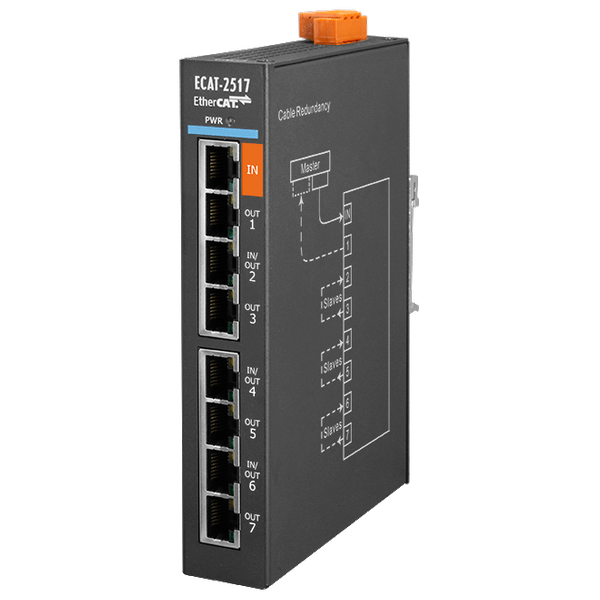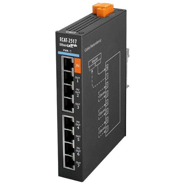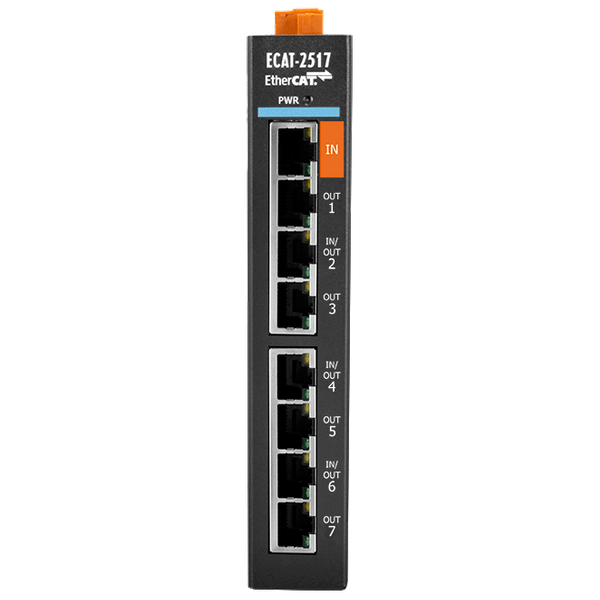 ECAT-2517 to 1-do-7 portowy węzeł EtherCAT. Jest zaprojektowany, aby umożliwić bardziej elastyczne i łatwe w utrzymaniu rozmieszczenie okablowania za pomocą łańcucha i rozgałęzień.Zastosowania