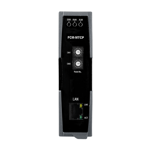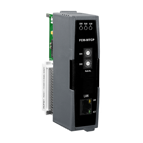 FCP-MTCP to moduł komunikacyjny dla systemu iDCS-8000. Wspiera protokół Modbus/TCP slave, najpopularniejszy w przemyśle, dla sterowników PLC lub kontrolerów obsługujących Modbus/TCP master. Moduł ten oferuje również diody LED do lokalnej diagnostyki systemu i statusu połączenia Ethernet. Ponadto, dwa przełączniki obrotowe służą do szybkiej konfiguracji ID (adresu IP) dla innych modułów FCM-MTCP. Moduł zapewnia także izolację 1000 VDC między kanałami a magistralą płyty głównej. Jeśli jakiekolwiek wysokie napięcie lub prąd uszkodzi kanały, system (płyty główne, inne moduły i jednostka sterująca) nie zostaną uszkodzone dzięki izolacji.