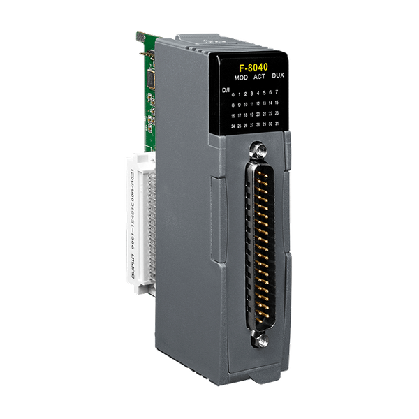 Moduł F-8040 charakteryzuje się 32 kanałami cyfrowego wejścia (typ źródło/ujście). Można wybrać typ źródła lub ujścia poprzez różne okablowania. F-8040 może określić binarne wejście z napięciowego źródła DC. Kanały cyfrowego wejścia oferują także wskaźniki LED do lokalnego wyświetlania statusu wejścia cyfrowego. Ponadto, moduł oferuje 3000 VDC izolacji optycznej między kanałami a magistralą. W przypadku, gdy wysokie napięcie lub prąd uszkodzi kanały, system (magistrale, inne moduły i jednostka kontroli) nie zostaną zaatakowane dzięki izolacji.Zastosowania