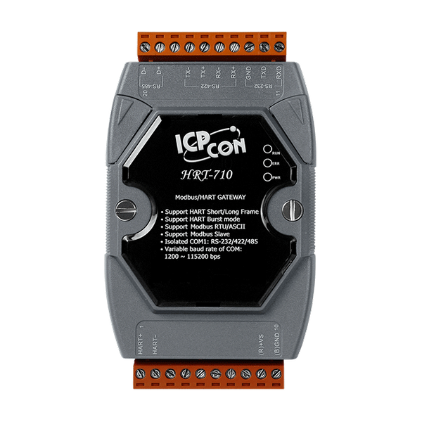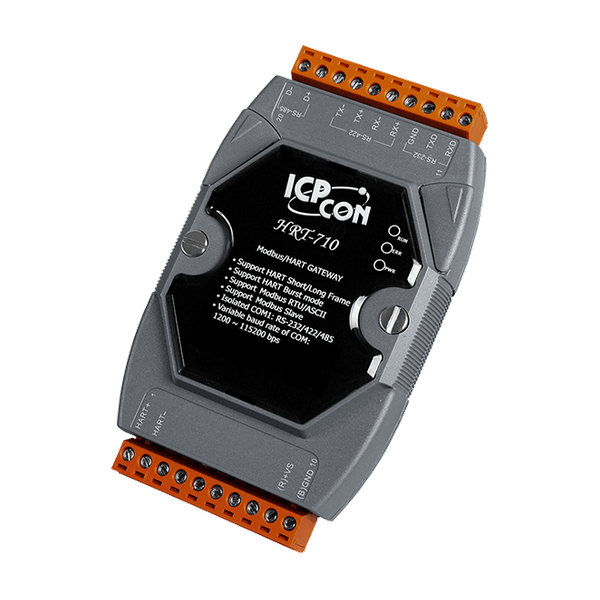 Bramka HRT-710 jest specjalnie zaprojektowana dla głównego urządzenia protokołu HART. Umożliwia ona głównemu urządzeniu Modbus dostęp do urządzeń HART, którymi mogą być np. przetworniki lub siłowniki. Dodatkowo, dostarczamy również narzędzie programowe HG_Tool do konfiguracji modułów i diagnostyki urządzeń HART. Dzięki tym modułom użytkownicy mogą łatwo i szybko zintegrować swoje urządzenia HART z siecią Modbus.