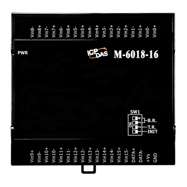 M-6018-16 to moduł wejściowy analogowy, który zawiera 16 różnicowych kanałów wejściowych analogowych. Zakres wejściowy napięcia wynosi od ±15 mV do ±2.5 V, zakres wejściowy prądu wynosi +4 do +20 mA, 0 do +20 mA lub ±20 mA, a do wejścia termoparowego można zastosować termopary typu J, K, T, E, R, S, B, N, C, L, M, LDIN43710. Moduł zapewnia ochronę przed przepięciami do 120 VDC. Ponadto moduł posiada wykrywanie otwartych przewodów dla typów wejść termoparowych i oferuje ochronę ESD o wartości 4 kV oraz izolację wewnątrzmodułową o wartości 3000 VDC.