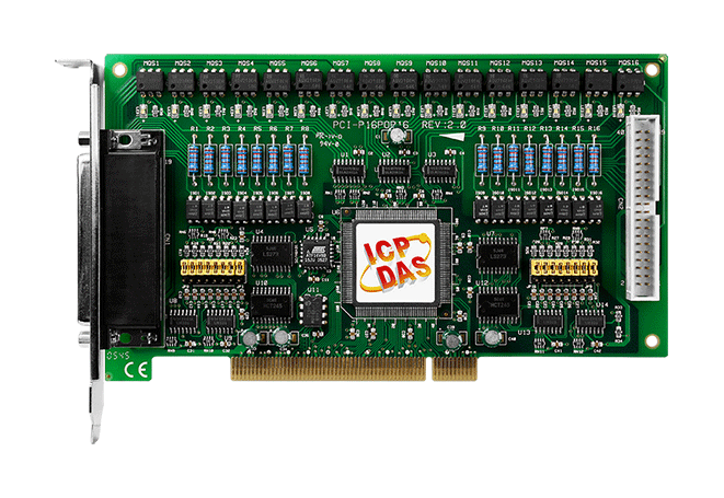 Karta PCI-P16POR16U Universal PCI obsługuje magistralę PCI 3.3 V/5 V i zapewnia 16 cyfrowych kanałów wejściowych optycznie izolowanych oraz 16 kanałów wyjściowych przekaźników PhotoMOS. Zarówno izolowane kanały DI, jak i kanały przekaźników PhotoMOS używają krótkiej ścieżki optycznej do przesyłania sygnału elektronicznego między elementami obwodu i utrzymują je elektrycznie odizolowane.