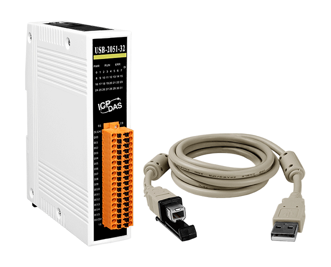USB-2051-32 to urządzenie wejściowo-wyjściowe na złączu USB z pełną prędkością, oferujące 16 lub 32 cyfrowe kanały wejściowe. Wszystkie cyfrowe kanały wejściowe mogą być wykorzystywane jako 32-bitowe liczniki. Dodatkowo, dzięki możliwości wyboru przez okablowanie, kanały wejściowe mogą działać zarówno jako źródła lub obciążenia, z efektywnym zasięgiem do 500 metrów dla kontaktu suchego. USB-2051-32 oferuje także 32 wskaźniki LED, które mogą być używane do monitorowania statusu cyfrowych kanałów wejściowych. Podwójna funkcja Watchdog z konfigurowalnymi wartościami startowymi i zabezpieczeniem zapewnia nieprzerwaną pracę urządzenia nawet w trudnych warunkach.