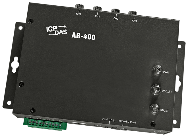 Seria AR-200/AR-400 to gama wysoko wydajnych modułów do dynamicznego zbierania sygnałów, zaprojektowanych specjalnie do monitorowania i analizy drgań. Maksymalna jednoczesna częstotliwość próbkowania dla każdego kanału w AR-200 i AR-400 wynosi odpowiednio do 200k-Hz i 125k-Hz. Moduły AR-200/AR-400 zawierają wbudowany prąd wzbudzenia 3mA do zasilania akcelerometrów IEPE oraz 16-bitowy przetwornik A/D. Dane zbierane przez AR-200/AR-400 są zapisywane na karcie Micro SD, która może być używana do analizy drgań offline. ICP DAS również dostarcza narzędzie, które można zainstalować na komputerze Hosts, umożliwiające łatwą konfigurację różnych trybów wyzwalania, zmianę częstotliwości próbkowania oraz planowanie czasu próbkowania w różnych aplikacjach za pomocą narzędzi deweloperskich. W związku z tym, moduły AR-200/AR-400 są polecane jako najlepszy wybór do monitorowania i pomiaru drgań.
