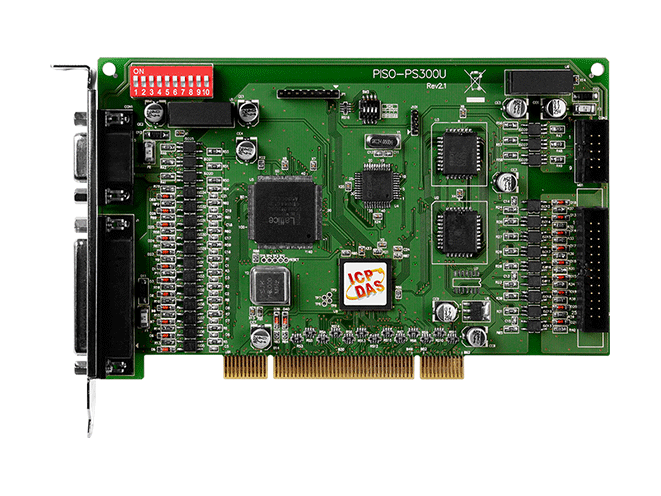 PISO-PS300U to 3-osiowa płyta sterująca serwomotorem na polecenia impulsowe. Wbudowany procesor PISO-PS300U realizuje polecenia ruchu przesyłane z komputera Host za pośrednictwem bufora FIFO o pojemności 2 KB. Wysyła również pozycję i status do komputera Host za pomocą drugiego bufora FIFO o pojemności 2 KB. Te bufory zapewniają buforowanie czasowe i są bardzo odpowiednie dla systemów operacyjnych Windows. Dostarczane są sterowniki urządzeń i biblioteki funkcji dla DOS, Windows 7 oraz Windows XP/2000.
