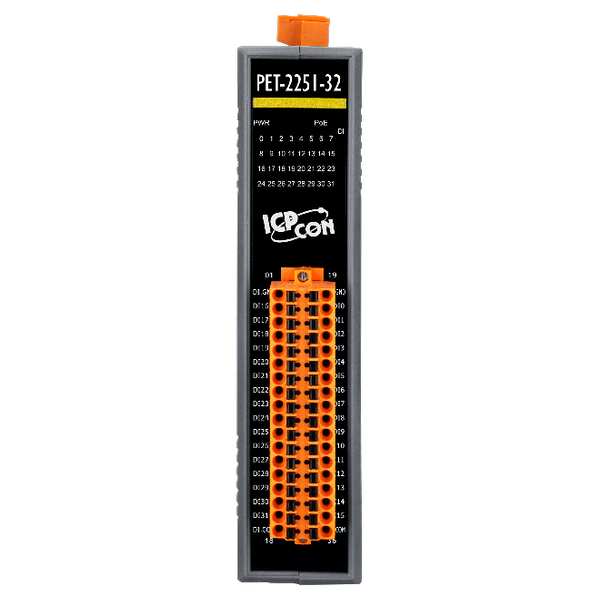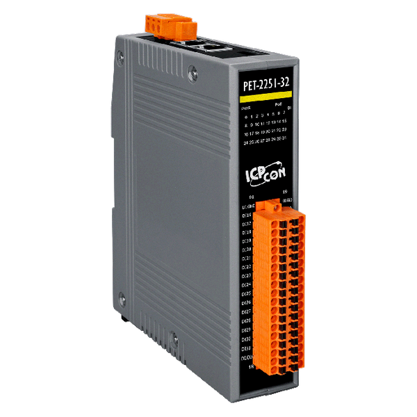 PET-2251-32 to moduł wejść cyfrowych (Wet/Dry Contact) z 32 kanałami, z których każdy może pełnić funkcję 32-bitowego licznika. Moduł posiada wbudowany 2-portowy przełącznik Ethernet, umożliwiający topologię daisy-chain. Ta funkcja oferuje elastyczność konfiguracji urządzeń, upraszcza instalację oraz zmniejsza koszty infrastruktury. Dodatkowo moduł zapewnia ochronę EMS (EFT/ESD/Surge) oraz izolację I/O 3000 VDC, zwiększając zdolność tłumienia zakłóceń w środowiskach przemysłowych.