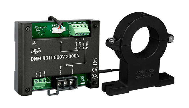DNM-831I-600V-2000A to jednochanelowy tłumik napięcia oraz jednochanelowy transformator prądowy. Maksymalny zakres napięcia wejściowego wynosi od ±600 V i może zostać stłumiony do ±10 V, a maksymalny zakres prądu wejściowego wynosi od ±2000 A i może zostać stłumiony do ±10 V. Urządzenie zapewnia izolację wewnątrzmodułową 3000 VDC oraz izolację kanałową 3000 VDC, co zapobiega zakłóceniom od szumów z wejść na wyjścia lub między kanałami. Może być używane z modułami wejścia analogowego, takimi jak I-7017, I-87017, M-7017RMS oraz I-87017W-RMS itp. do pomiaru wysokich prądów.