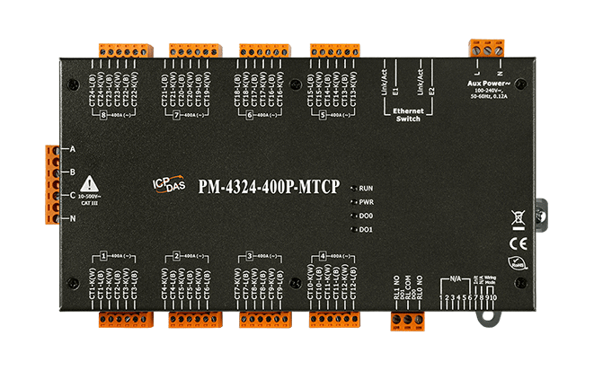 Seria wieloobwodowych liczników mocy PM-4324 monitoruje do 8 obwodów trójfazowych lub 24 obwody jednofazowe, lub dowolną kombinację obwodów jednofazowych i trójfazowych. Seria PM-4324 może mierzyć do 24 prądów za pomocą zewnętrznych przekładników prądowych (CT). Ta elastyczność sprawia, że seria PM-4324 jest idealna dla obiektów wielonajemczych, takich jak projekty mieszkaniowe, biurowce i centra handlowe. To kompaktowe urządzenie jest zaprojektowane tak, aby łatwo zmieścić się w istniejących rozdzielnicach lub być zamontowane powierzchniowo w pobliżu, eliminując w ten sposób potrzebę kosztownych projektów modernizacyjnych lub przeznaczania dodatkowej przestrzeni na urządzenie. PM-4324A to ten sam model co PM-4324, z wyjątkiem pomiaru prądu przemiennego. PM-4324A posiada 2 oddzielne wejścia obwodu głównego, które mogą być używane w różnych systemach zasilania.