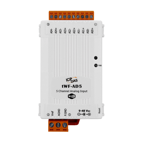 Moduł tWF-AD5 posiada 5 kanałów analogowego wejścia różnicowego oraz połączenie WLAN zgodne ze standardami IEEE802.11b/g/n. Dzięki powszechności infrastruktury sieci 802.11, tWF-AD5 umożliwia łatwe włączenie łączności bezprzewodowej do systemów monitorowania i sterowania. Wspiera również protokół Modbus TCP oraz konfigurację szyfrowania sieci, co pozwala na doskonałą integrację z oprogramowaniem SCADA lub aplikacją HMI Modbus oraz oferuje użytkownikom łatwy i bezpieczny dostęp z dowolnego miejsca i o każdej porze.Zastosowania