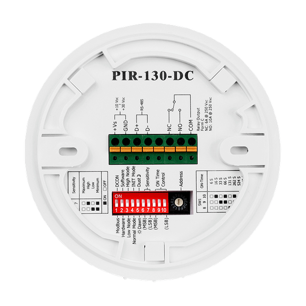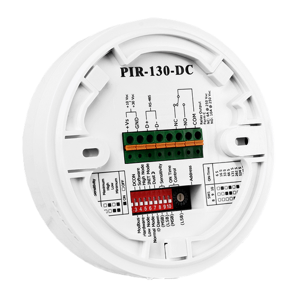 Moduł PIR-130 zawiera 1-kanałowy pasywny czujnik podczerwieni (PIR), który potrafi wykryć fale podczerwieni generowane przez człowieka w zasięgu około 8 metrów średnicy z pokryciem 360°. PIR-130 jest używany do detekcji ruchu wewnątrz pomieszczeń i może być skonfigurowany do automatycznego włączania światła po wykryciu ruchu. Moduł PIR-130 zawiera również 1-kanałowy czujnik temperatury, który może być używany do pomiaru temperatury w pomieszczeniu lub może być skonfigurowany do aktywacji alarmu pożarowego.