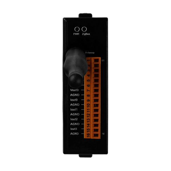 ZT-2024 to 12-bitowy, 4-kanałowy bezprzewodowy moduł ZigBee do analogowego wyjścia, który zapewnia programowalny zakres wyjściowy na wszystkich kanałach, w tym 0 ~ +10 VDC, -10 VDC ~ +10 VDC, 0 ~ +5 VDC, -5 VDC ~ +5 VDC, 0 ~ +20 mA lub +4 mA ~ +20 mA. Istnieją również opcje konfiguracji wartości przy włączeniu oraz wartości bezpiecznej. Adres modułu, protokół, suma kontrolna, ZT-PID, kanał ZT i ustawienia kodu typu można łatwo konfigurować za pomocą kombinacji przełączników obrotowych i DIP.Zastosowania