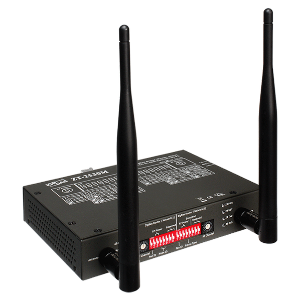 ZT-2530M to most ZigBee używany do połączenia dwóch różnych sieci ZigBee. Absorpcja sygnałów bezprzewodowych przez budynki i inne przeszkody w środowiskach miejskich znacząco pogarsza transmisję bezprzewodową. Dlatego ICP DAS oferuje nowy ZT-2530M - most ZigBee, który jest wyposażony w podwójne anteny i łączy koordynator ZigBee z routerem ZigBee. Może być w pełni skonfigurowany sprzętowo i używany do mostkowania komunikacji między jednostkami wewnętrznymi a zewnętrznymi lub do podziału złożonej sieci w celu zwiększenia efektywności. Produkty ZigBee firmy ICP DAS są zaprojektowane głównie, aby pomóc użytkownikom w budowaniu systemu komunikacji bezprzewodowej w środowiskach, w których fizyczne połączenie urządzeń jest trudne. Są szeroko stosowane w kontroli przemysłowej, wbudowanym czujnikowaniu, zbieraniu danych medycznych, ostrzeganiu o dymie i intruzach, automatyzacji budynków, automatyzacji domowej i tak dalej.