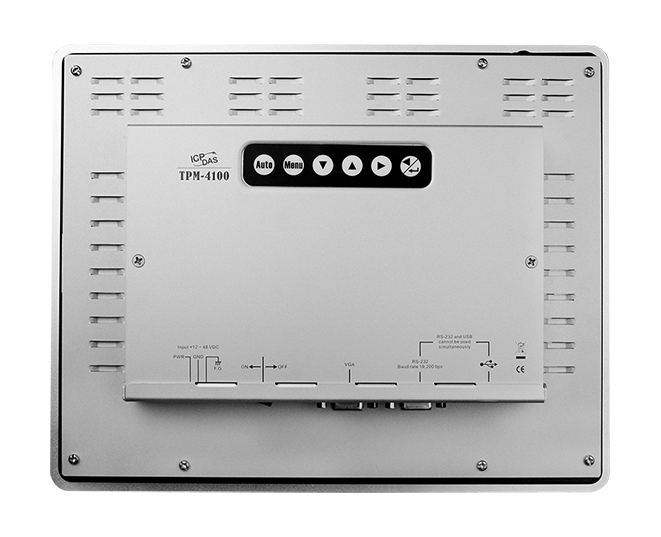 Monitor Panelowy TPM-4100/NP wykorzystuje standardowy 10,4" ekran TFT LCD z wytrzymałą aluminiową ramką przednią i wspiera rozdzielczość 800 x 600 oraz temperaturę pracy od -20 do +70°C. TPM-4100/NP jest również gwarantowany do współpracy z systemem sterowania PAC ICP DAS, takimi jak serie WP-8000, LX-8000 oraz XP-9000.