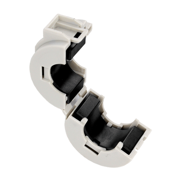 Plastikowa obudowa otaczająca dzielony rdzeń jest zaprojektowana tak, aby zaciskać się na kablu, zapewniając pewne zamocowanie ferrytu na kablu. Rdzenie mogą być zastosowane do istniejących instalacji lub używane w operacjach po montażu na kablach danych i zasilających sprzętu elektronicznego. Rdzenie ferrytowe są ważne dla zapewnienia silnych sygnałów elektronicznych przez kable w środowiskach, gdzie EMI lub RFI mogą stanowić problem.