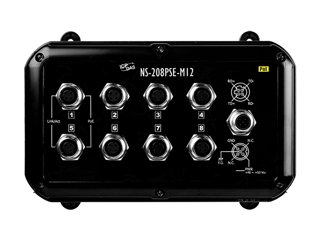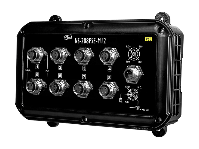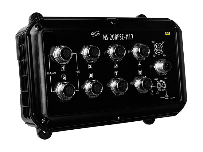 NS-208PSE-M12-IP67 jest przeznaczony do zastosowań przemysłowych w trudnych warunkach środowiskowych. Złącza M12 zapewniają stabilne, solidne połączenia i gwarantują niezawodną pracę, nawet w aplikacjach narażonych na wibracje i wstrząsy. Switch PoE NS-208PSE-M12-IP67 oferuje 8 szybkich portów Ethernet typu M12 z 8 portami PoE zgodnymi z IEEE 802.3af. Switch został sklasyfikowany jako urządzenie zasilające (PSE) i dostarcza do 15,4 W mocy na port. Switch Ethernet obsługuje IEEE 802.3/802.3u/802.3x z prędkościami 10/100M, pełnym/pół dupleksem, automatycznym wykrywaniem MDI/MDI-X i stanowi ekonomiczne rozwiązanie dla Twojej przemysłowej sieci Ethernet.