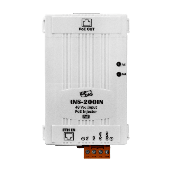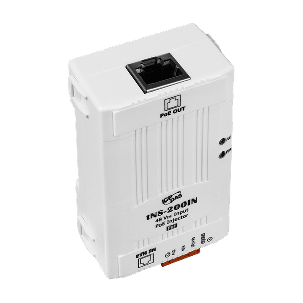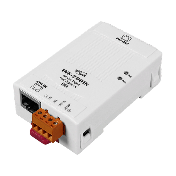 tNS-200GIN to jednopozycyjny wtryskiwacz PoE, który obsługuje zasilane urządzenia PoE w środowiskach przemysłowych. tNS-200GIN dostarcza zarówno dane, jak i zasilanie za pośrednictwem pojedynczego standardowego kabla Ethernet do zasilanego urządzenia PoE, które jest zaprojektowane do odbioru zarówno danych, jak i zasilania przez jego złącze portu RJ-45.