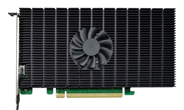 Zaawansowany system chłodzenia SSD7105 zapewnia, że dyski NVMe są utrzymywane w optymalnych temperaturach roboczych, nawet podczas intensywnych operacji I/O, łącząc pełnowymiarowy anodowany radiator aluminiowy z niezwykle trwałym, niemal bezgłośnym wentylatorem oraz wysokoprzewodzącą podkładką termiczną.